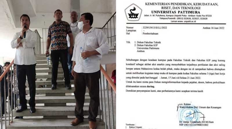 Ragam Kondisi Kampus Kurang Kondusif, Pimpinan Unpatti Liburkan Mahasiswa Fakultas Teknik dan FKIP 16 Juni 2022ZonaInfo.id, Ambon – Pimpinan Universitas Pattimura (Unpatti) Ambon meliburkan mahasiswa Read More