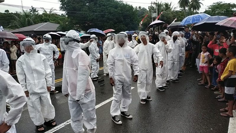 Kostum yang dipakai juga beragam warna dan model. Bahkan ada peserta yang memakai kostum APD Covid-19 dan daster dilengkapi dengan rambut palsu dan kacamata hitam.