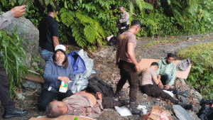 Namun dalam video berdurasi 2 menit 50 detik yang diambil seseorang usai kendaraan terbalik di tepi jalan yang dalam, nampak terlihat para petugas bahu membahu membantu korban korban yang mengalami cedera dalam musibah itu.