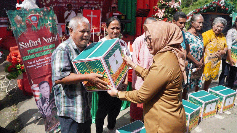 Safari Natal merupakan agenda rutin Pemkot Ambon yang dirangkaikan dengan pembagian paket sembako kepada masyarakat yang membutuhkan.