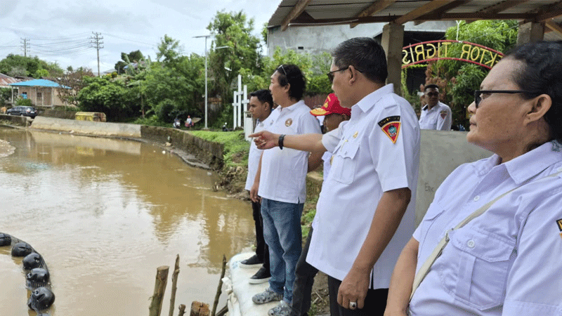 Wali Kota Ambon, Bodewin M. Wattimena meninjau pemasangan trash boom, di Sungai Wairuhu, Desa Galala, Rabu (10/12/2025).